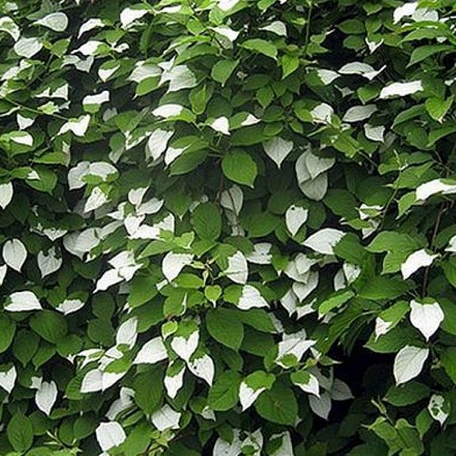 Растение имеет белые цветки, которые расцветают в начале лета, придавая вашему саду неповторимый шарм и аромат. Актинидия полигама брюнет (мужской) предпочитает тень и дренированные богатые почвы, поэтому выберите для него укромное место с защитой от прямых солнечных лучей.