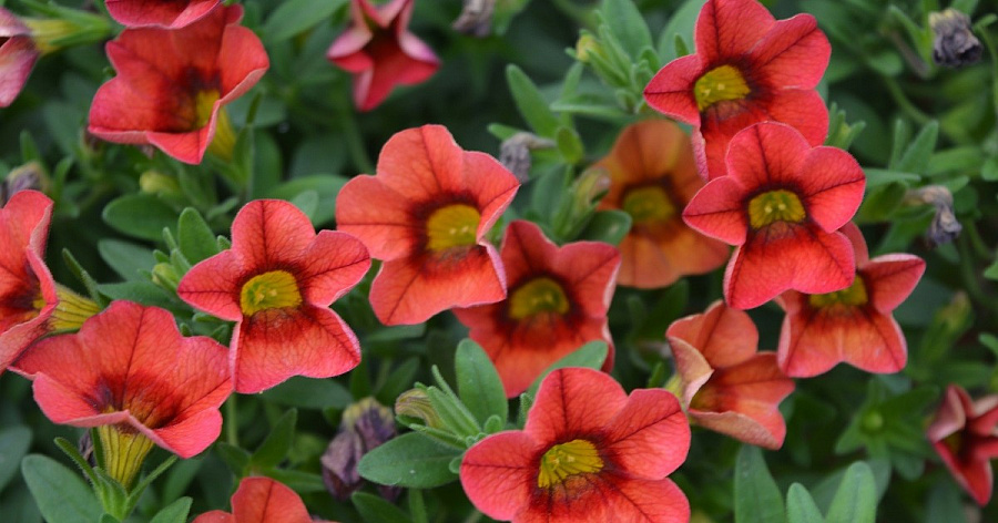 Рассада калибрахоа Calita Compact Scarlet Red Eye не любит сильный ветер, который может растрепать и порвать стебли и цветки. Поэтому лучше выращивать растение в защищенном месте. Сажают рассаду в балконные ящики, вазоны, подвесные корзины. При посадке рассчитывайте, что на одно растение потребуется не меньше 3 л земли. Взрослый кустик отличается шарообразной формой. Розово-красные цветочки появляются в начале июня. Они достаточно мелкие, диаметром до 3 см. Но их распускается такое большое количество, что зеленых листиков становится практически не видно.