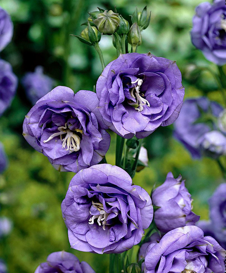 Рассада колокольчика Ла Белле Блю (La Belle Blue) - это многолетнее растение с прикорневой розеткой отмирающих на зиму листьев и прямостоячими неветвистыми облиственными стеблями. Их высота достигает от 60 до 80 см. Цветки очень крупные, густо махровые, небесно-голубого цвета. Цветут в течение всего лета с июня по август. Цветение наступает на второй год после посева. Рассада колокольчика Ла Белле Блю предпочитает открытые солнечные места. Высаживать ее рекомендуется в рыхлую суглинистая почва.