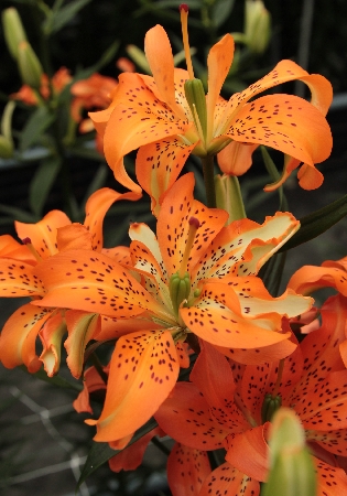 • Окраска цветка : цветы ярко-оранжевые с темными вкраплениями, со временем меняются на белые с салатовым центром, крап остается, цветение длительное