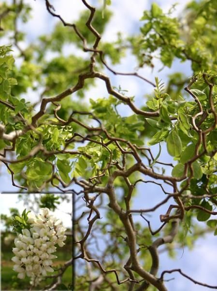 Саженцы Робинии лжеакации Твисти Беби на штамбе (Twisty Baby) – высокое дерево, которое выглядит очень экзотично. Высота не превышает 15и метров, а ширина короны может быть 10 метров. Ветви растут раскидисто, не соблюдая симметрию, иногда формируется несколько стволов. Зигзагообразные побеги располагаются горизонтально, при этом кончики устремляются вверх. Белые пахучие цветы образуют длинные кисточки. Больше всего соцветий можно наблюдать в конце мая или в начале июня. Плоды растут в виде коричневых стручков, они не осыпаются на зиму. Не стоит пробовать их на вкус, они ядовитые. Для высадки подходит любая почва, главное, чтобы на растение попадало много света.